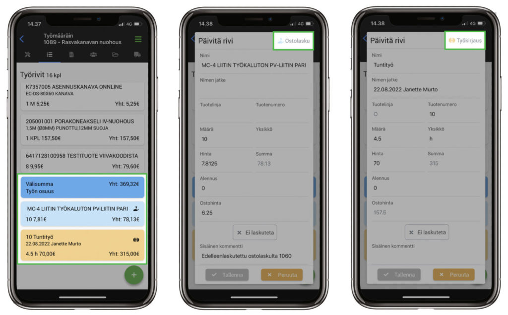Uusia ominaisuuksia työlähetteen työrivien hallinnointiin