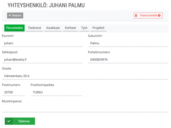 Voit nyt poistaa yhteyshenkilön Evelian yhteyshenkilörekisteristä.