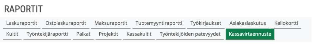 Tässä ohjeessa köydään läpi, miten luot Excel-muotoisen raportin kassavirtaennusteesta.